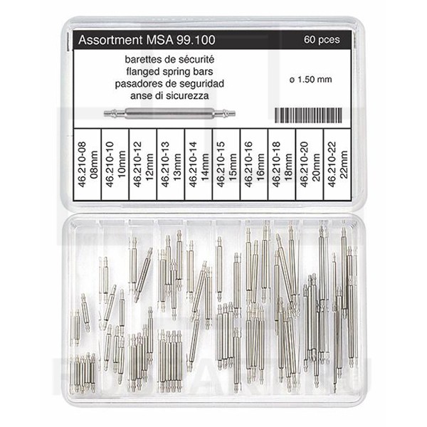 Цена за НАБОР ASSORTMENT OF FLANGED SPRING BARS, NICKEL SILVER / 1.50 mm / 60 PIECES