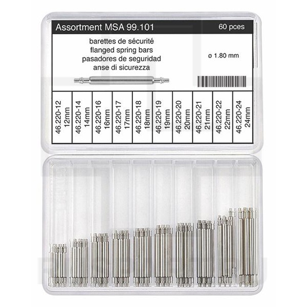Цена за НАБОР ASSORTMENT OF FLANGED SPRING BARS, STAINLESS STEEL / 1.80 mm / 60 PIECES
