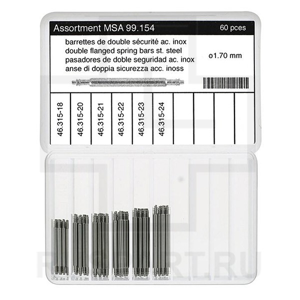 Цена за НАБОР ASSORTMENT OF DOUBLE FLANGED SPRING BARS, STAINLESS STEEL / 1.70 mm / 60 PIECES
