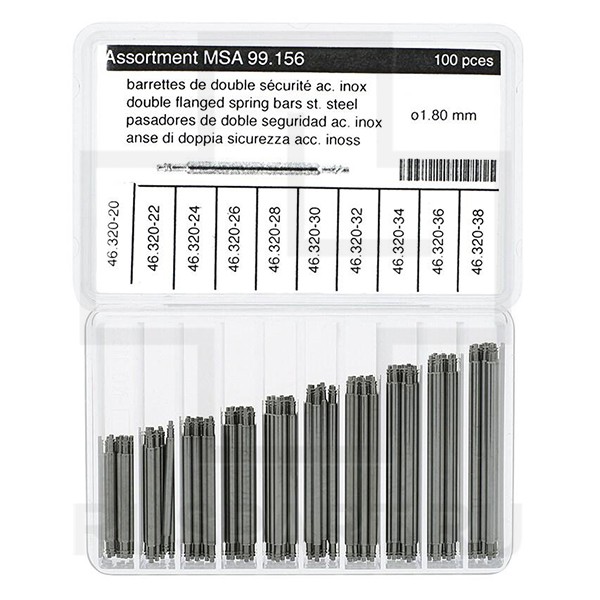 ASSORTMENT OF DOUBLE FLANGED SPRING BARS, STAINLESS STEEL / 1.80 mm / 100