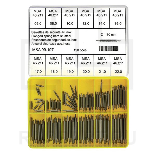 Цена за НАБОР ASSORTMENT OF FLANGED SPRING BARS, STAINLESS STEEL / 1.50 mm / 120 PIECES