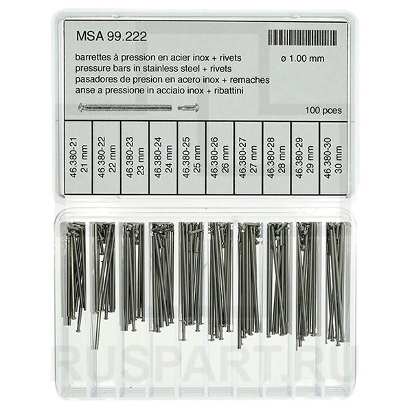 Цена за НАБОР ASSORTMENT OF PRESS-IN BARS, STAINLESS STEEL / 1.00 mm / 100 PIECES