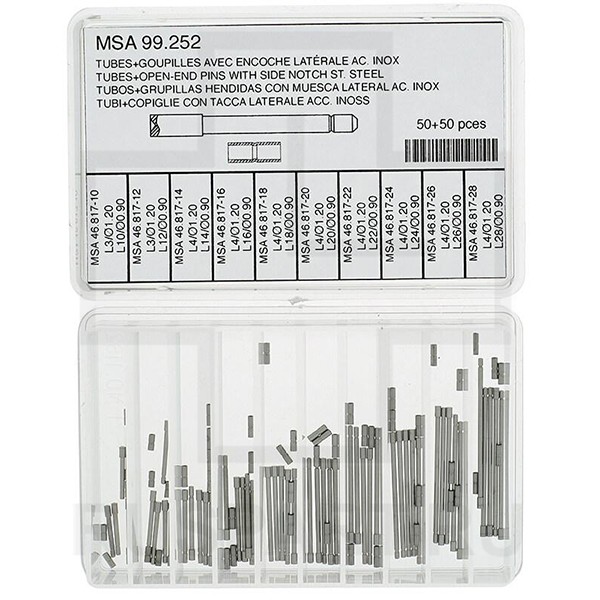 Цена за НАБОР ASSORTMENT OF TUBES+OPEN-END PINS WITH SIDE NOTCH, STAINLESS STEEL / 50+50 PIECES