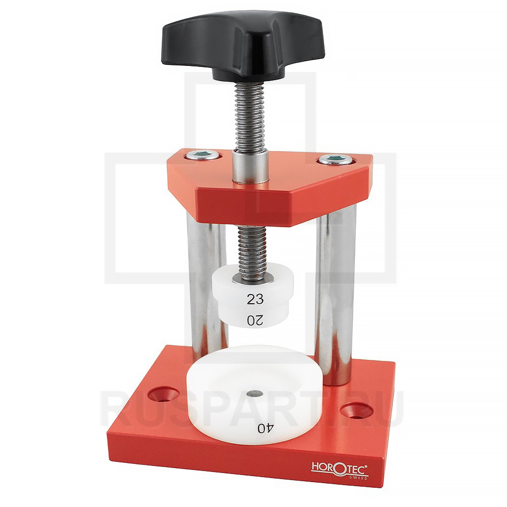 Мини-пресс для закрывания часов HOROTEC PERFPP01Описание: В комплект входит: 8шт фторопластовых дисков для закрывания задних Размеры насадок: 14-37 мм