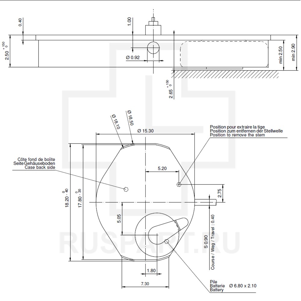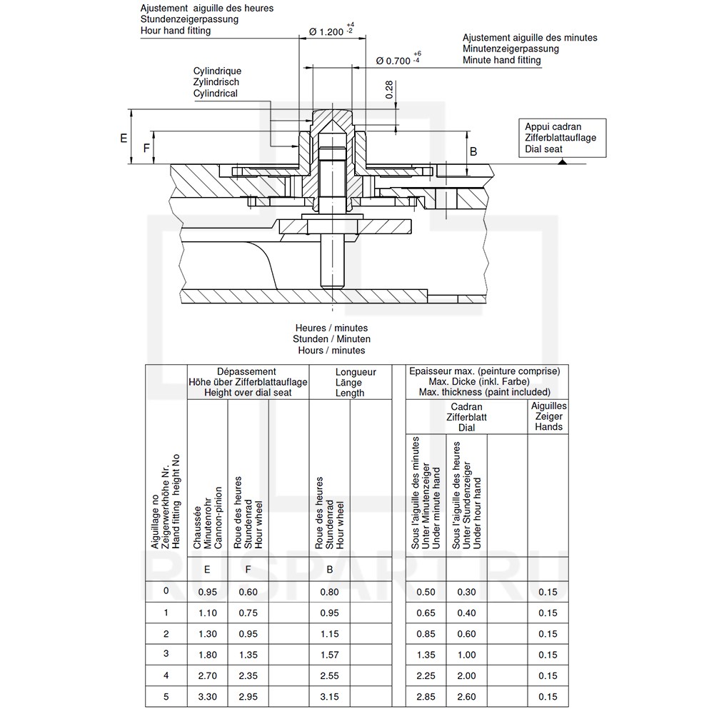 Механизм часовой в сборе RONDA 762 HH1Описание: MOVEMENT RONDA 762, SIZE 6 3/4''' x 8''', SWISS MADE, 2 HANDS, AIG1, HH1 (HAND FITTING HEIGHT No 1)