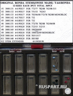 Набор переводных валов для мех-мов RONDA SUPERPARTS 641-stem kit, 12 размеров, 36 штук