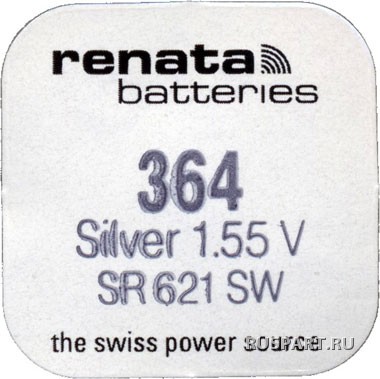 Батарейка кнопочная, оксид серебра RENATA SR621SWОписание: упаковка 10 шт на блистере