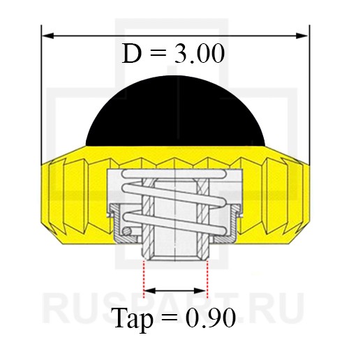 Переводная головка BELLONI желтая, сфера, 3.00 / 0.90 мм