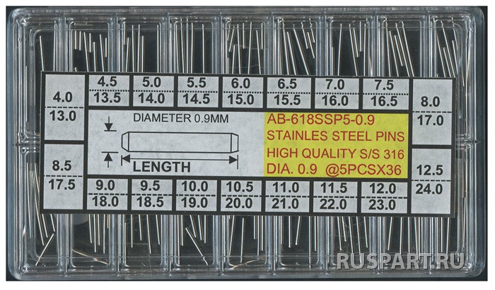 Набор штифтов без насечки SUPERPARTS 180 шт, 0.9мм, 4-24мм