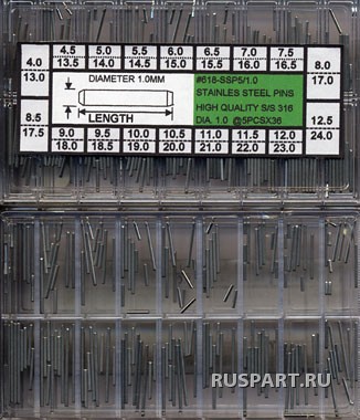 Набор штифтов без насечки SUPERPARTS 180 шт, 1.0мм, 4-24мм