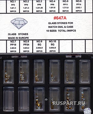 Набор декоративных камней для циферблатов и корпусов часов.