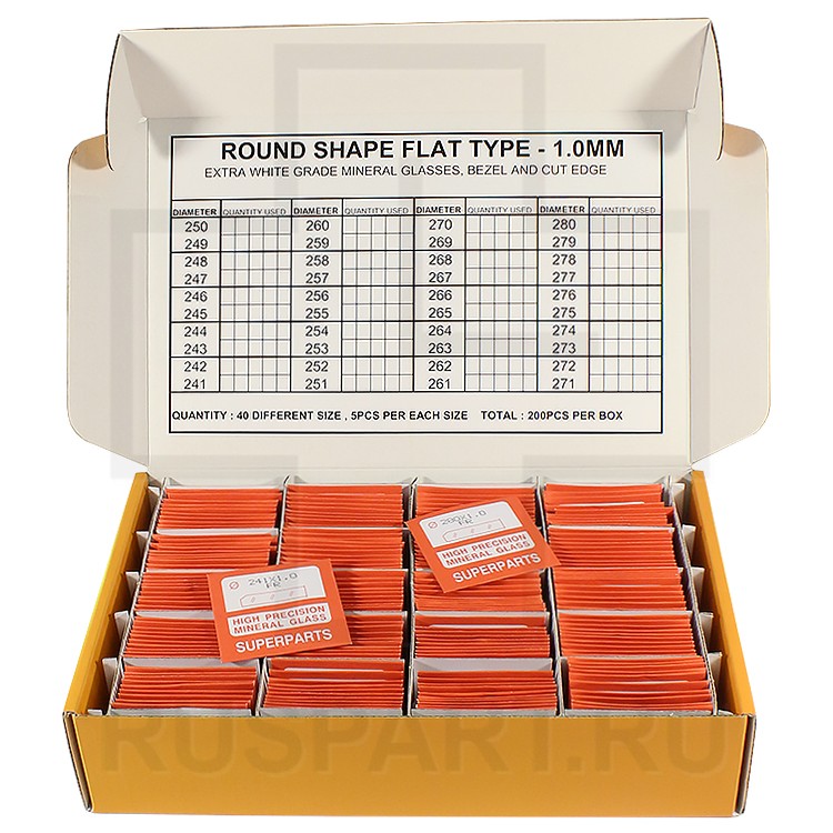 Стекла для наручных часов в наборе SUPERPARTS 200 шт, 1.0мм, 241-280мм