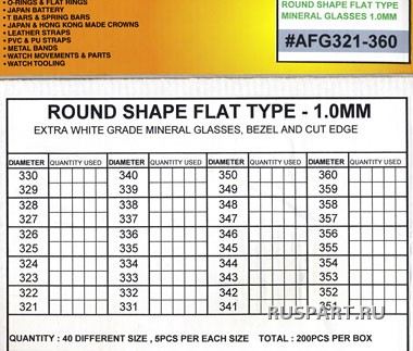 Стекла для наручных часов в наборе SUPERPARTS 200 шт, 1.0мм, 321-360мм