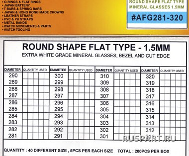 Стекла для наручных часов в наборе SUPERPARTS 200 шт, 1.5мм, 281-320мм