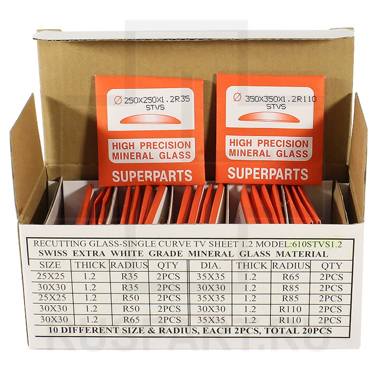 Стекла для наручных часов в наборе SUPERPARTS 20 шт, 1.2мм
