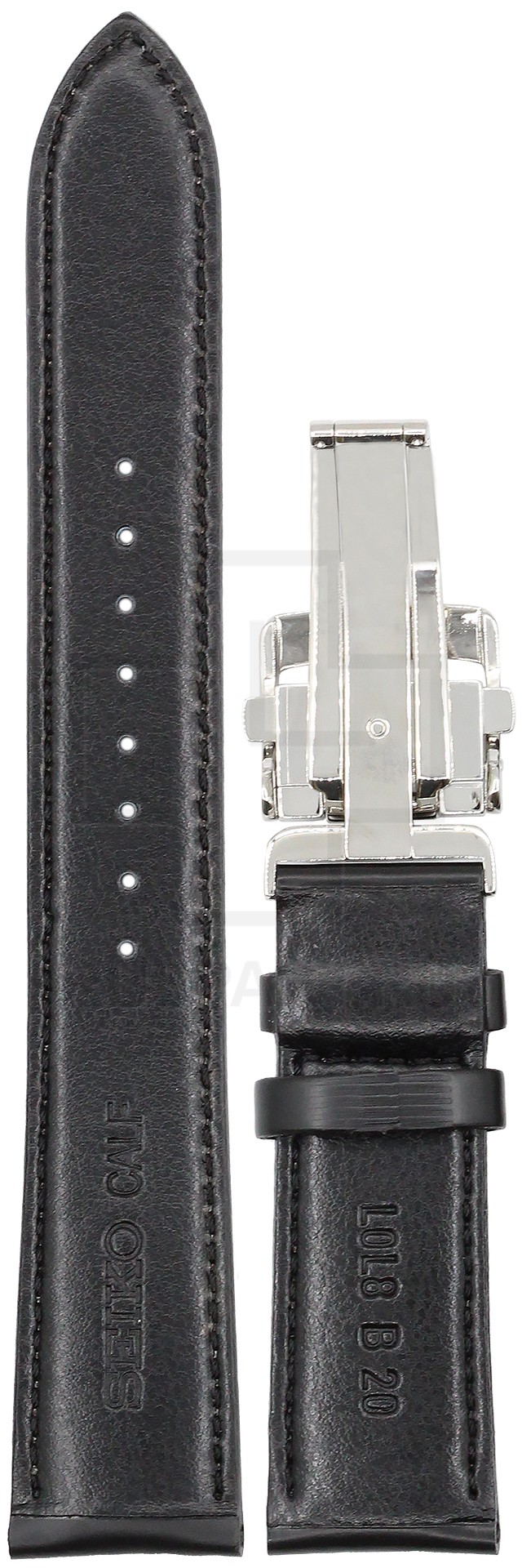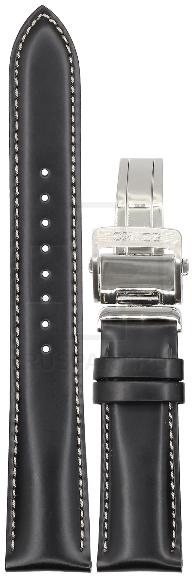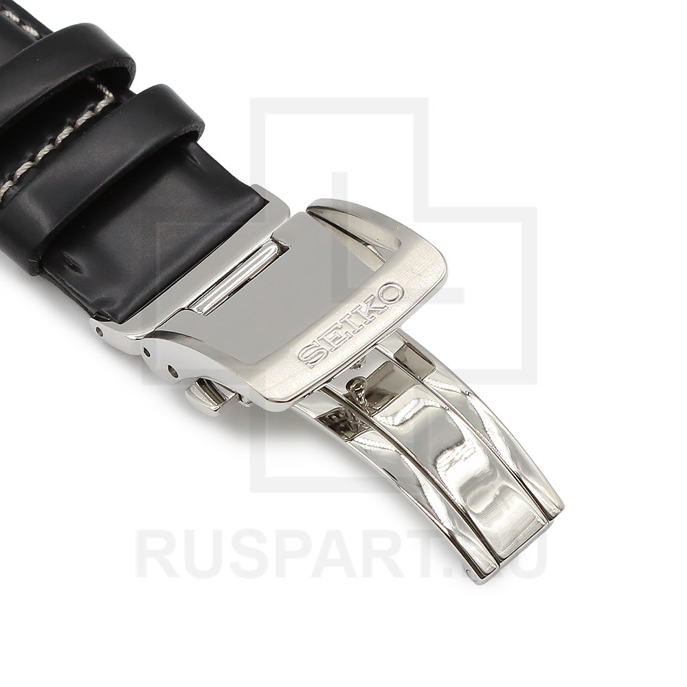Кожанный ремешок Seiko черного цвета, пряжка стальная. Ремешок имеет уникальное крепление и подходит только для указанных моделей.