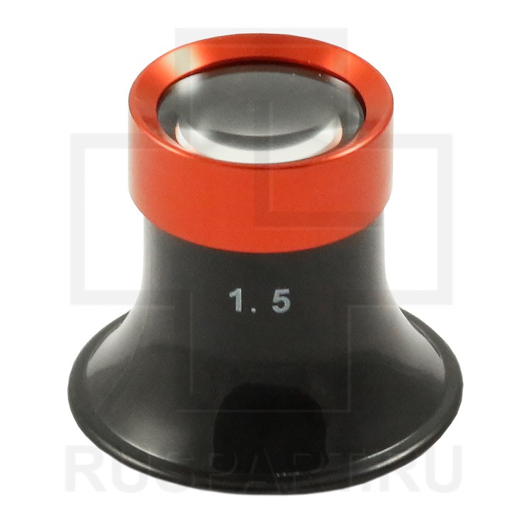 Черная пластиковая лупа классической формы с красным алюминиевым резьбовым кольцом.