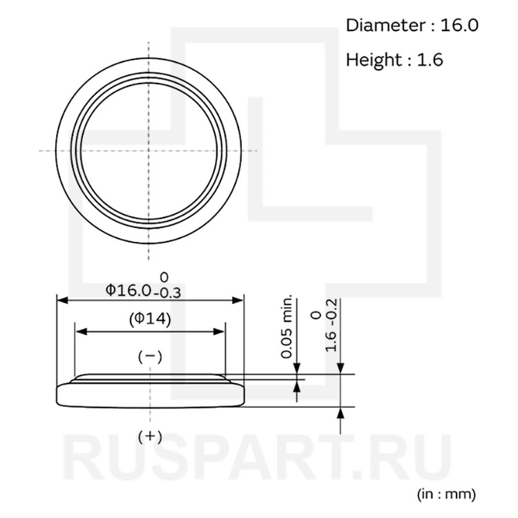 Батарейка часовая (кнопочная) литиевая MURATA CR1616