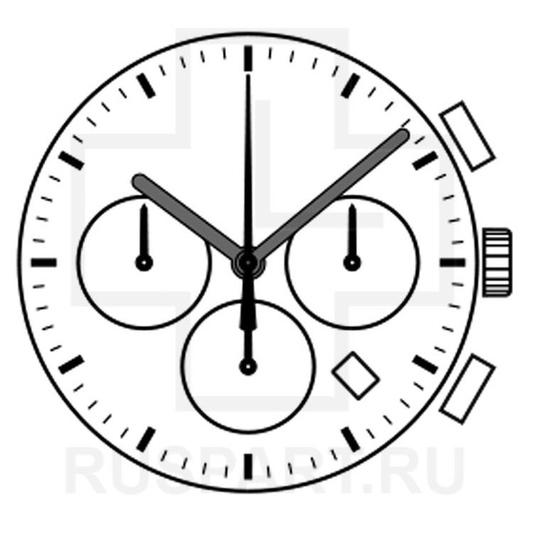 PREMIUM MECHANICAL MOVT, TMI NE88A, SIZE 12 1/2''', 2 HANDS WITH CENTER CHRONO SECOND, 3 EYES CHRONO SMALL SECOND/HOUR/30 MINUTE AT 3/6/9, STD HD HT, TYPE M, LASER MARKING 3 IN THE MOVT, DATE AT 4.5, H 7.62 mm