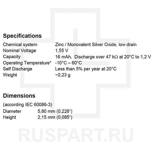 Батарейка кнопочная, оксид серебра RENATA SR521SWОписание: упаковка 10 шт на блистере