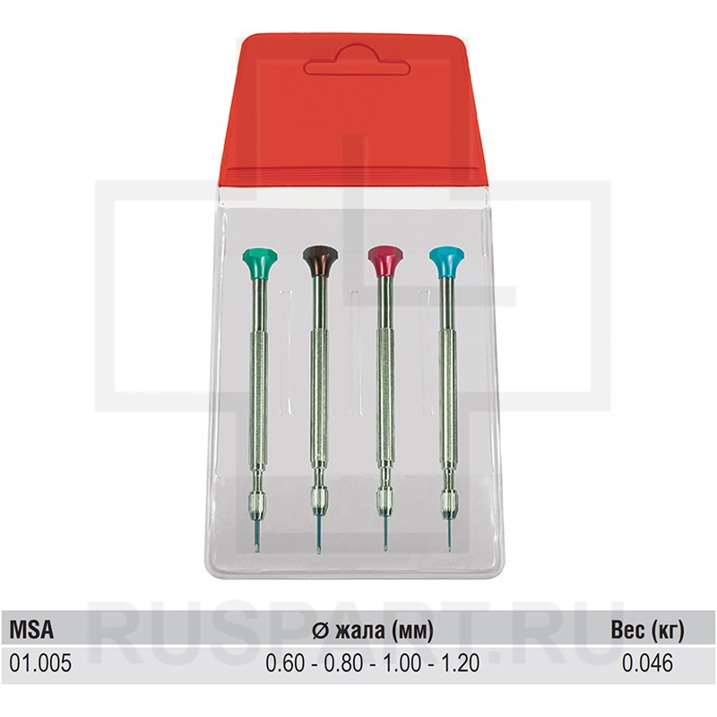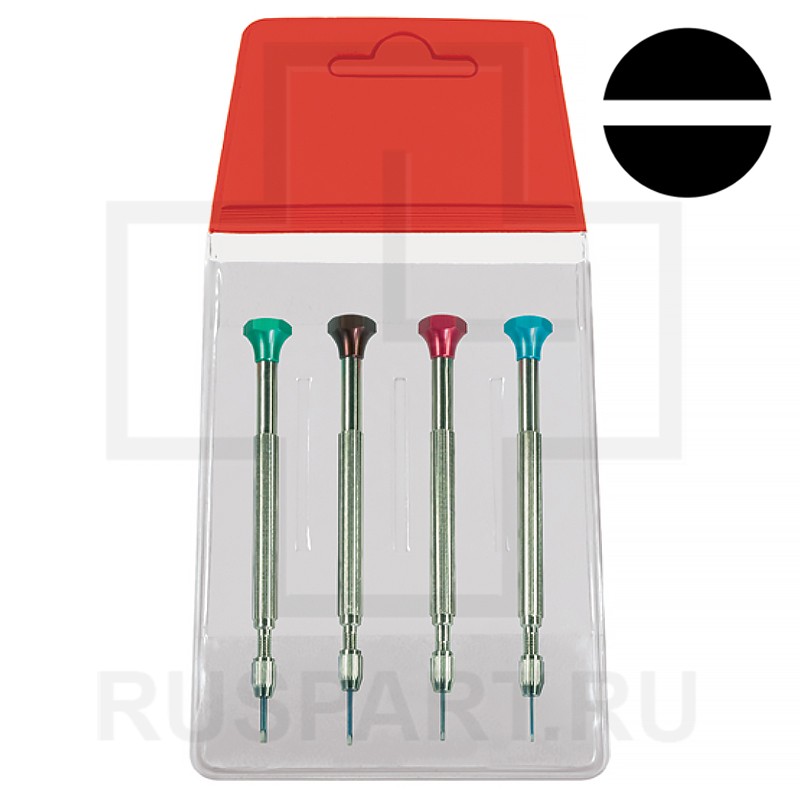 Набор из 4 плоских реверсивных отверток MSA 01.221-xxx. Поставляется в пластиковой упаковке.