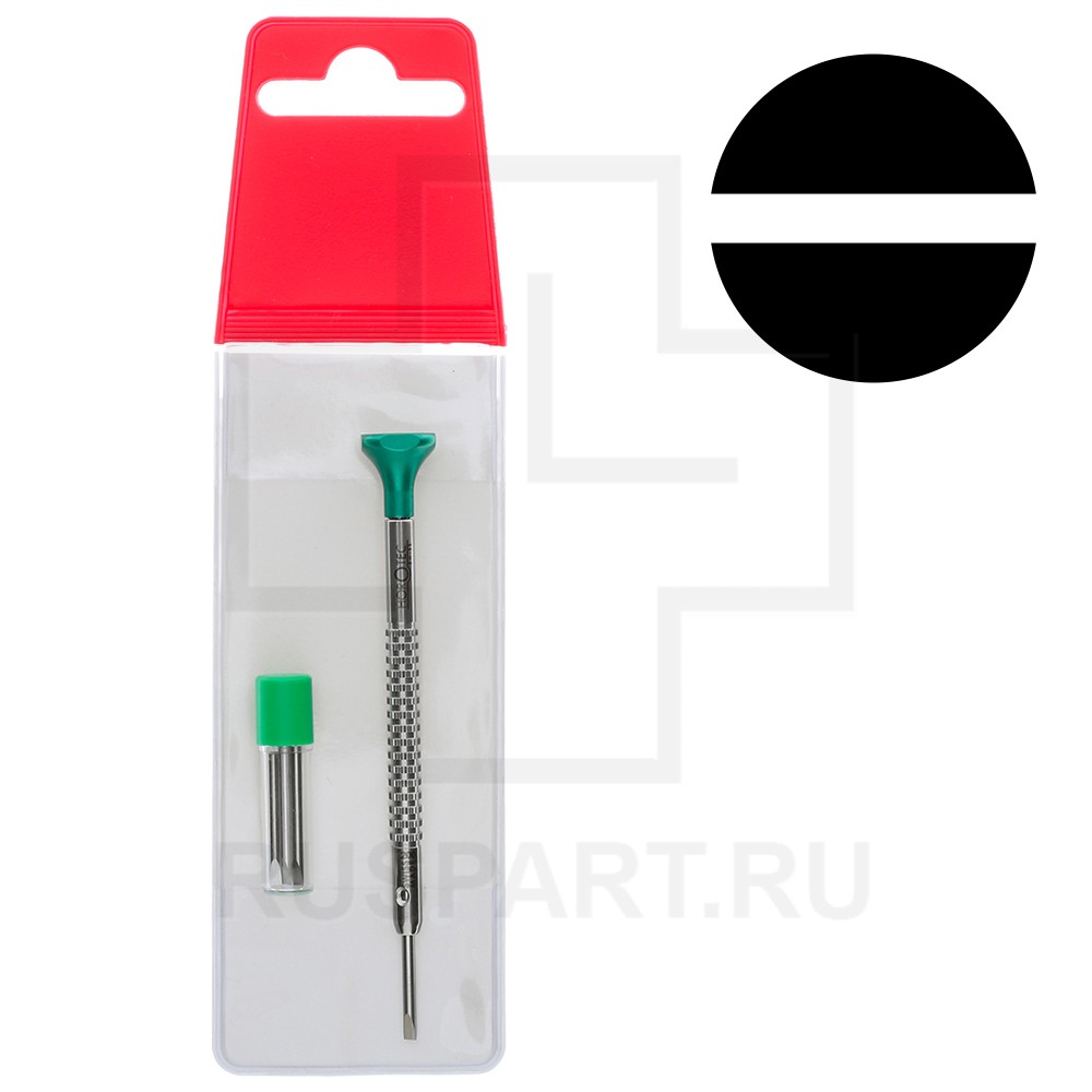 Часовая отвертка с рифленой стальной рукояткой MSA 01.201-xxx. Поставляется в пластиковой упаковке с 3 запасными жалами в пластиковом тубусе.
