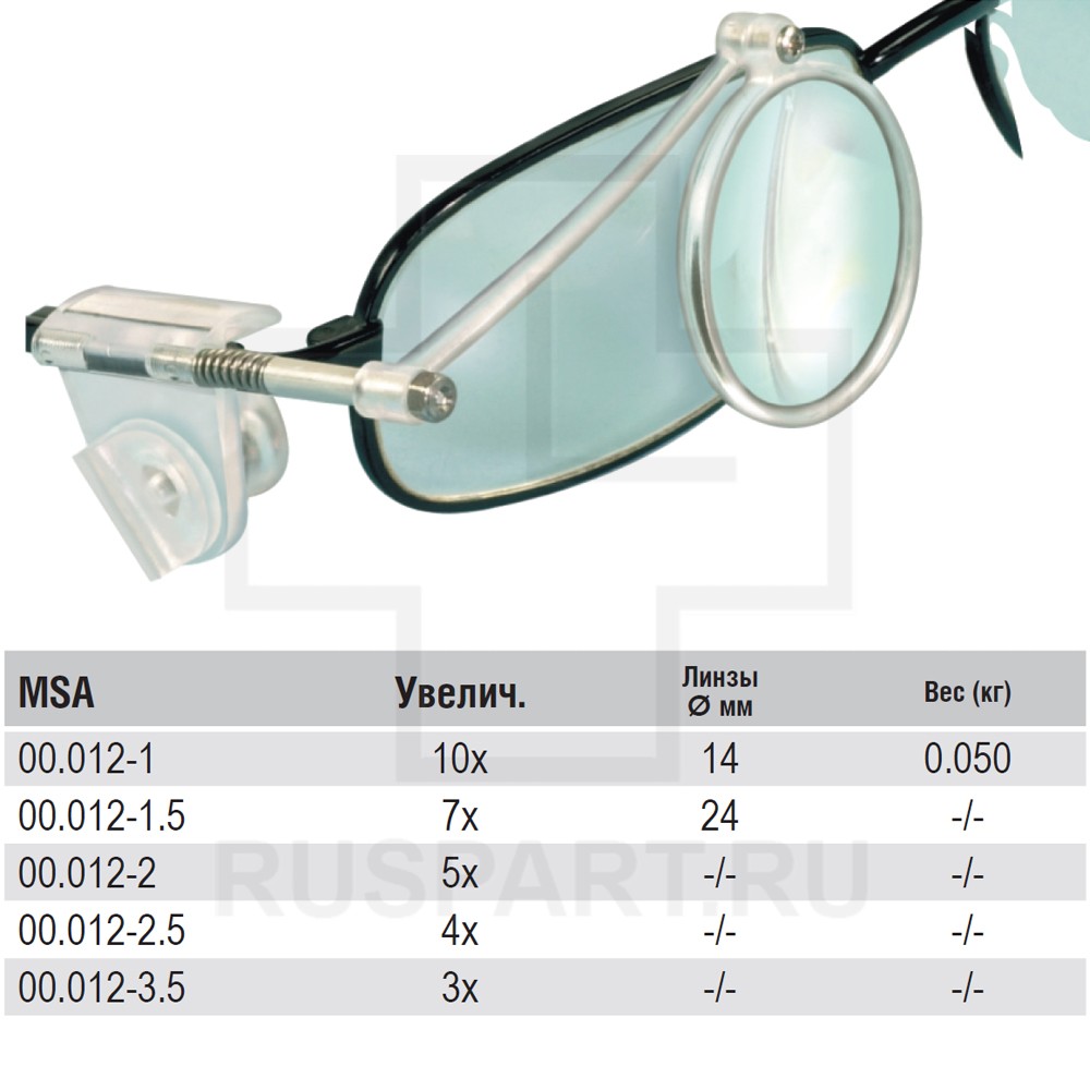 Простая легкая боковая лупа для очков (для левого и правого глаза). Поставляется в пластмассовом корпусе с различными фиксирующими зажимами для очков от 1,60 до 6,35 мм.
