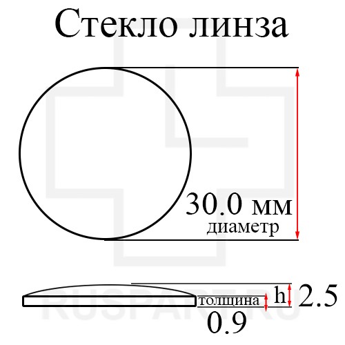Стекло минеральное (линза) SUPERPARTS 30.0X0.9 h2.5