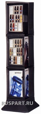 Трехуровневый стенд с листовым механизмом показа и местами для хранения.