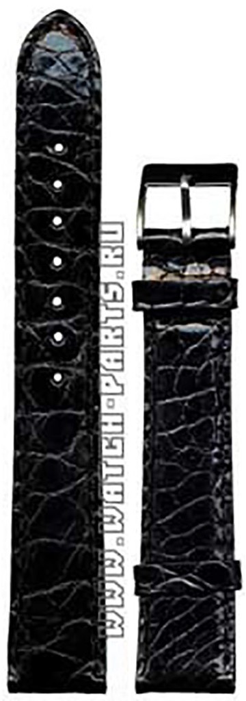 Удлиненный ремешок для наручных часов из кожи натурального аллигатора, черный, глянцевый. Размер 18/16.