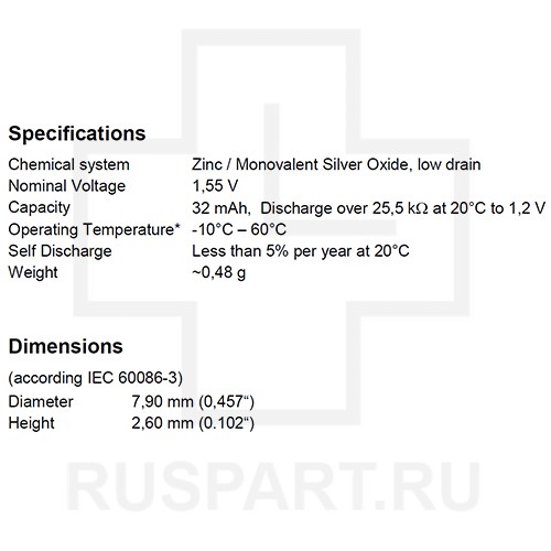 Батарейка кнопочная, оксид серебра RENATA SR726SWОписание: упаковка 10 шт на блистере