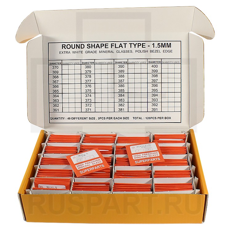 Стекла для наручных часов в наборе SUPERPARTS 120 шт, 1.5мм, 361-400мм
