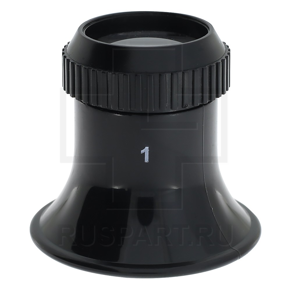 Черная пластиковая лупа классической формы с резьбовым креплением линзы. Легкая и прочная.