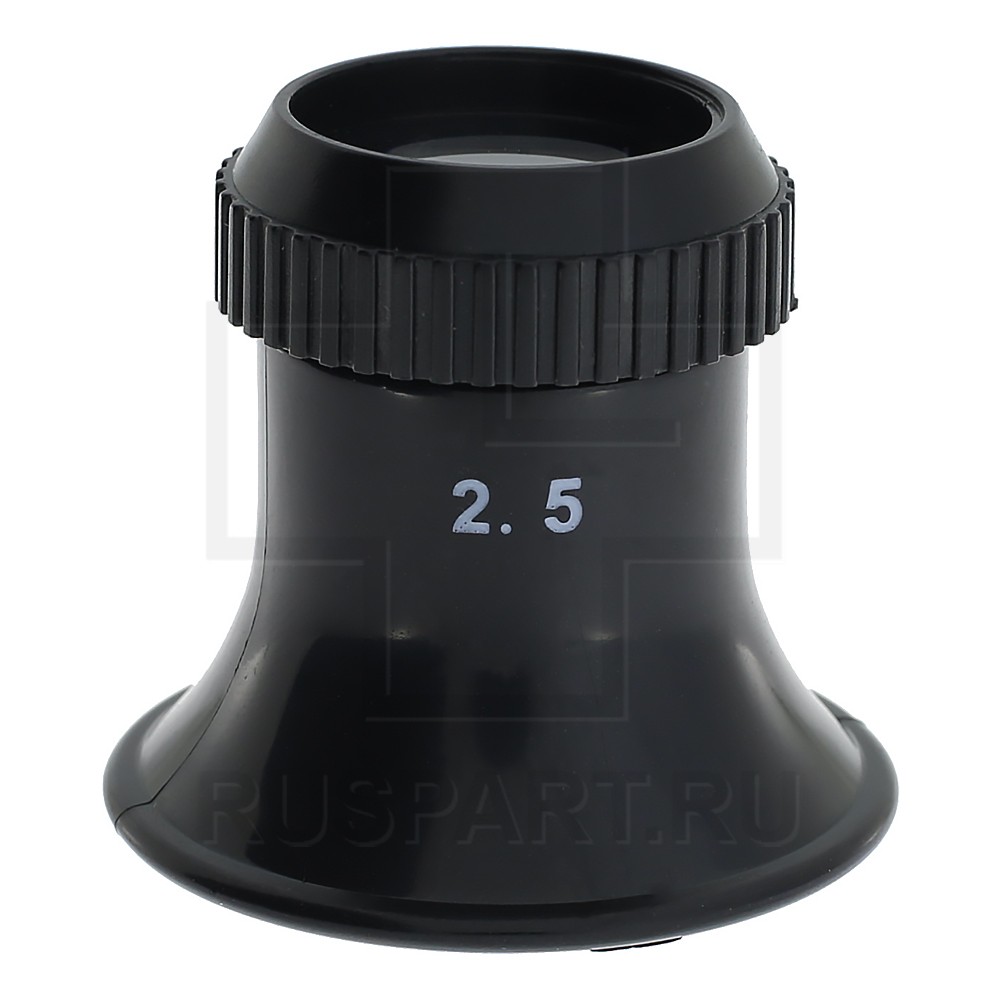 Черная пластиковая лупа классической формы с резьбовым креплением линзы. Легкая и прочная.
