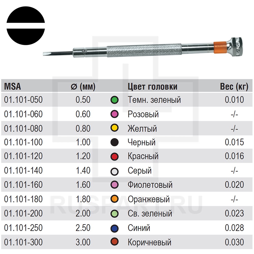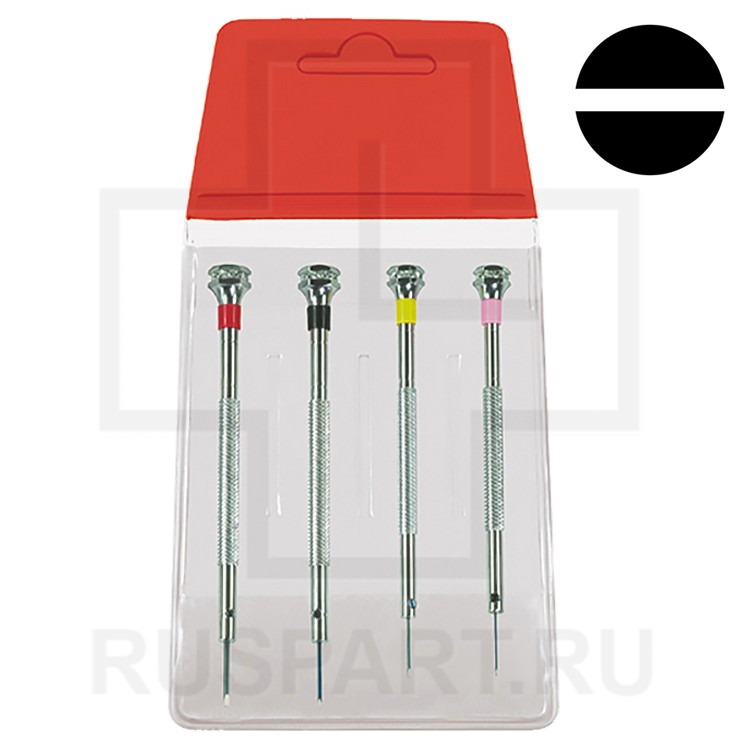 Набор из 4 плоских классических прецизионных отверток MSA 01.101-xxx. Поставляется в пластиковой упаковке.