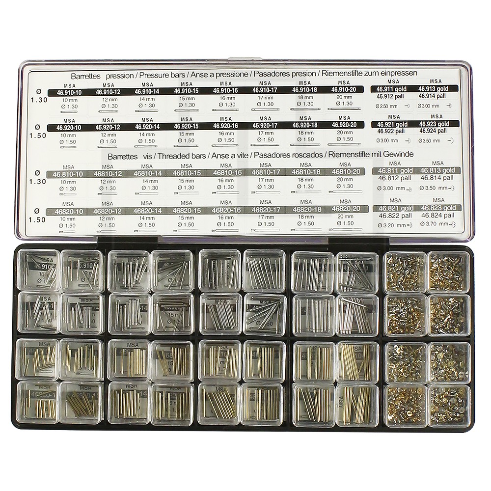 Винтовые и запрессовывающиеся ASSORTMENT PRESSURE/SCREW-ON BARS1.30/1.50 MM, 320 PIECES + RIVETS/SCREWS