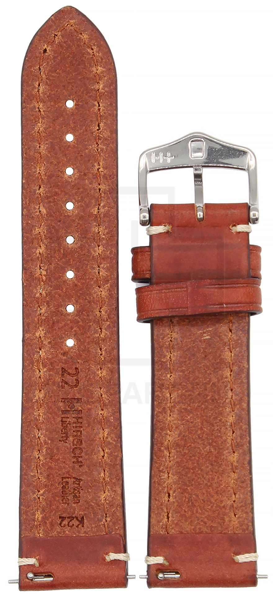 Прочная седельная кожа с задней части шкуры коровы. Эта кожа с натуральной зернистой структурой была окрашена в бочке по всей глубине волокон и выдублена с использованием растительных компонентов. Крепкий ремень из цельного куска кожи. Контрастная прошивка двумя нитями в индустриальном стиле. Декоративный закрепочный шов у застежки и у крепления к часам. Четкая линия тиснения по краям ремешка и на шлевке . Контрастные, трижды лакированные вручную кромки и шлевки.Высококачественная застежка из нержавеющей стали HIRSCH Classic.