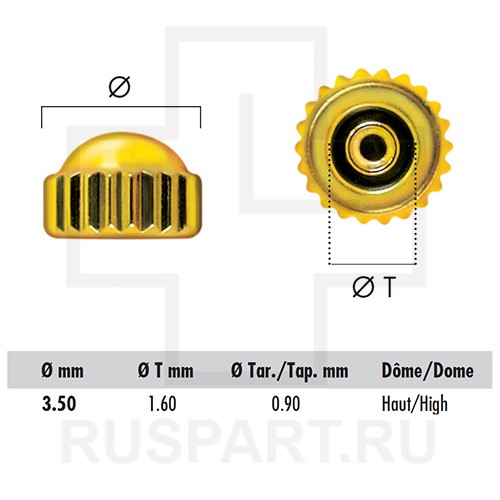 Водонепроницаемая головка из нержавеющей стали / желтая /3,50 /T 1,60 / TAP. 0,90
