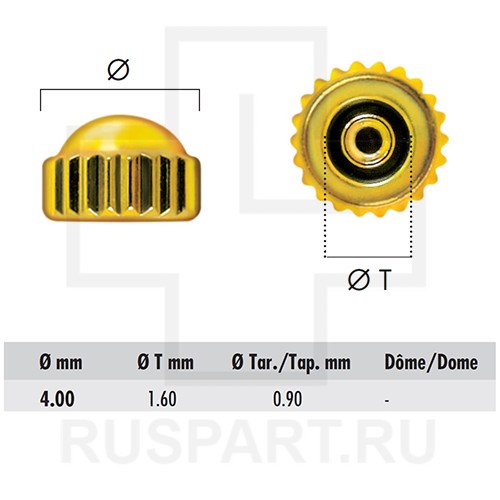 Водонепроницаемая головка из нержавеющей стали / желтая /4,00 /T 1,60 / TAP. 0,90