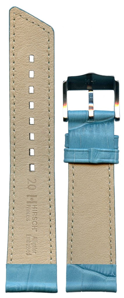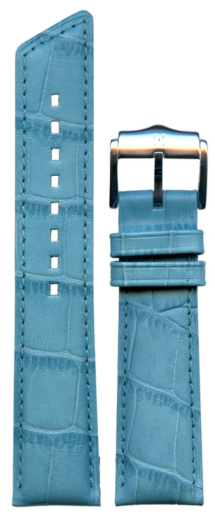 Ремешок из натуральной кожи, имитация аллигатора, голубой лед, 20/18 mm, замок белый