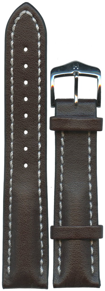 Ремешок из натуральной кожи, гладкий, коричневый, с набивкой, белая отстрочка, 20/18 mm, стальной замок.