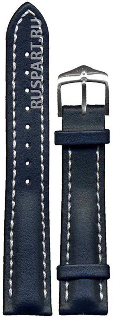 Ремешок из натуральной кожи, гладкий, синий, с набивкой, белая отстрочка, 18/16 mm, белый замок.