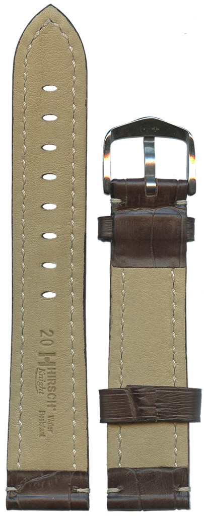 Ремешок из натуральной кожи, имитация аллигатора, коричневый, с белой отстрочкой, 20/18 mm, замок белый