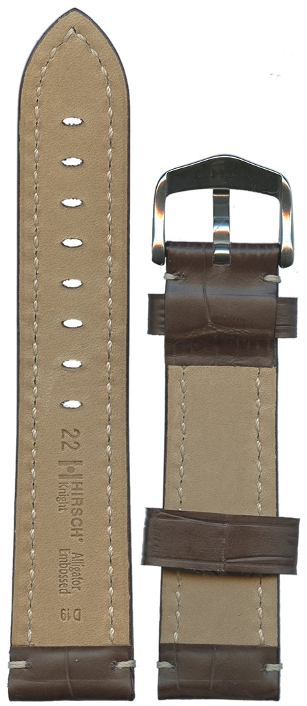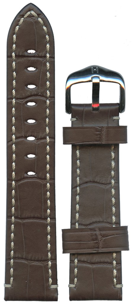 Ремешок из натуральной кожи, имитация аллигатора, коричневый, с белой отстрочкой, 22/20 mm, замок белый