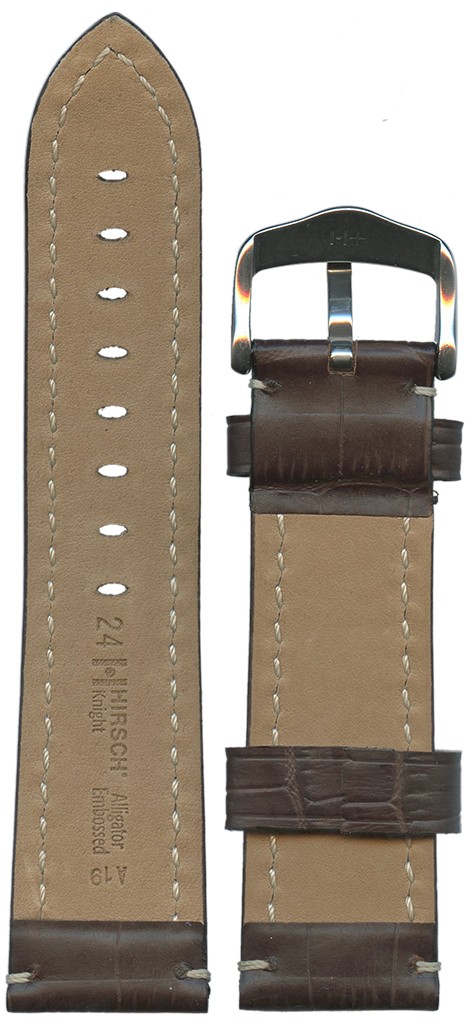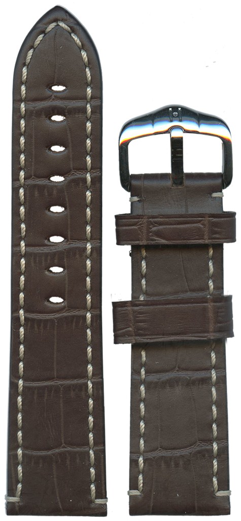 Ремешок из натуральной кожи, имитация аллигатора, коричневый, с белой отстрочкой, 24/22 mm, замок белый