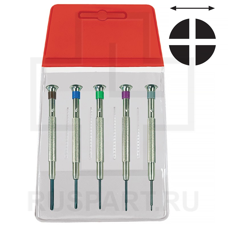 Набор из 4 специальных отверток с крестовидным фиксированным жалом типа PHILIPS. Поставляется в пластиковой упаковке.