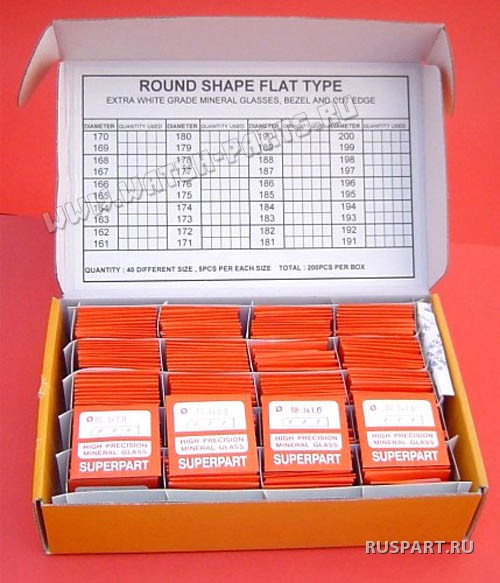 Стекла для наручных часов в наборе SUPERPARTS 200 шт, 1.0мм, 281-320мм