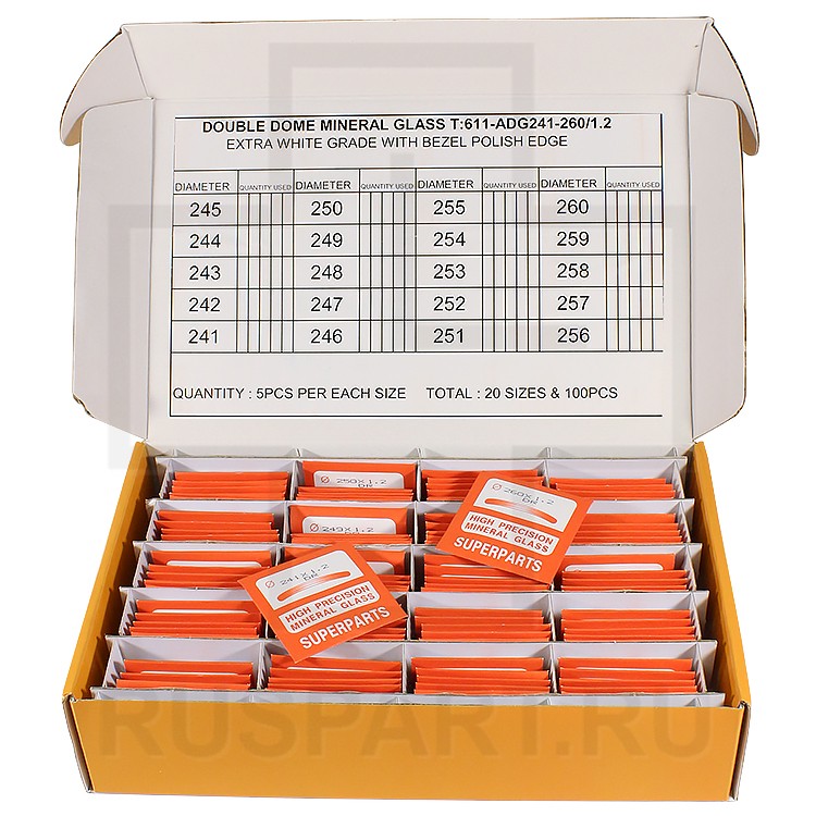 Стекла для наручных часов в наборе SUPERPARTS 100 шт, 1.2мм
