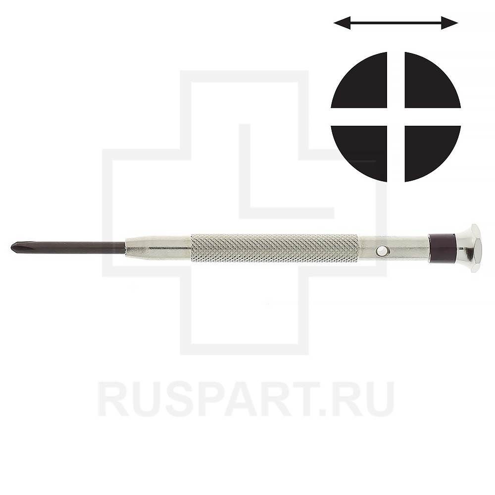Специальная отвертка с крестовидным фиксированным жалом типа PHILIPS. Рифленая хромированная рукоятка.