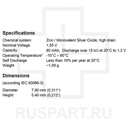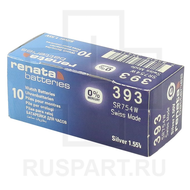 Батарейка кнопочная, оксид серебра RENATA SR754WОписание: упаковка 10 шт на блистере
